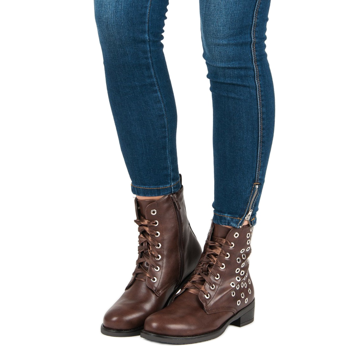 Cizmele maro pentru muncitori sunt prevazute cu sireturi puternice, maro si un fermoar lateral atractiv, care nu numai ca le subliniaza caracterul modern, dar le si incalta mai usor. Decorațiuni suplimentare sub formă de strasuri le conferă o atmosferă rock, perfectă pentru stilul casual.