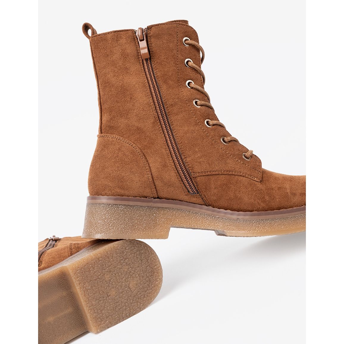 Fabricate dintr -o imitație de înaltă calitate din piele de căprioară, muncitorii sunt caracterizați printr -un nas rotund și un călcâie rigidizată, construită, care asigură confort și stabilitate atunci când purtați. O talpă de rulare din plastic garantează o aderență bună, chiar și în condiții meteorologice mai dificile.