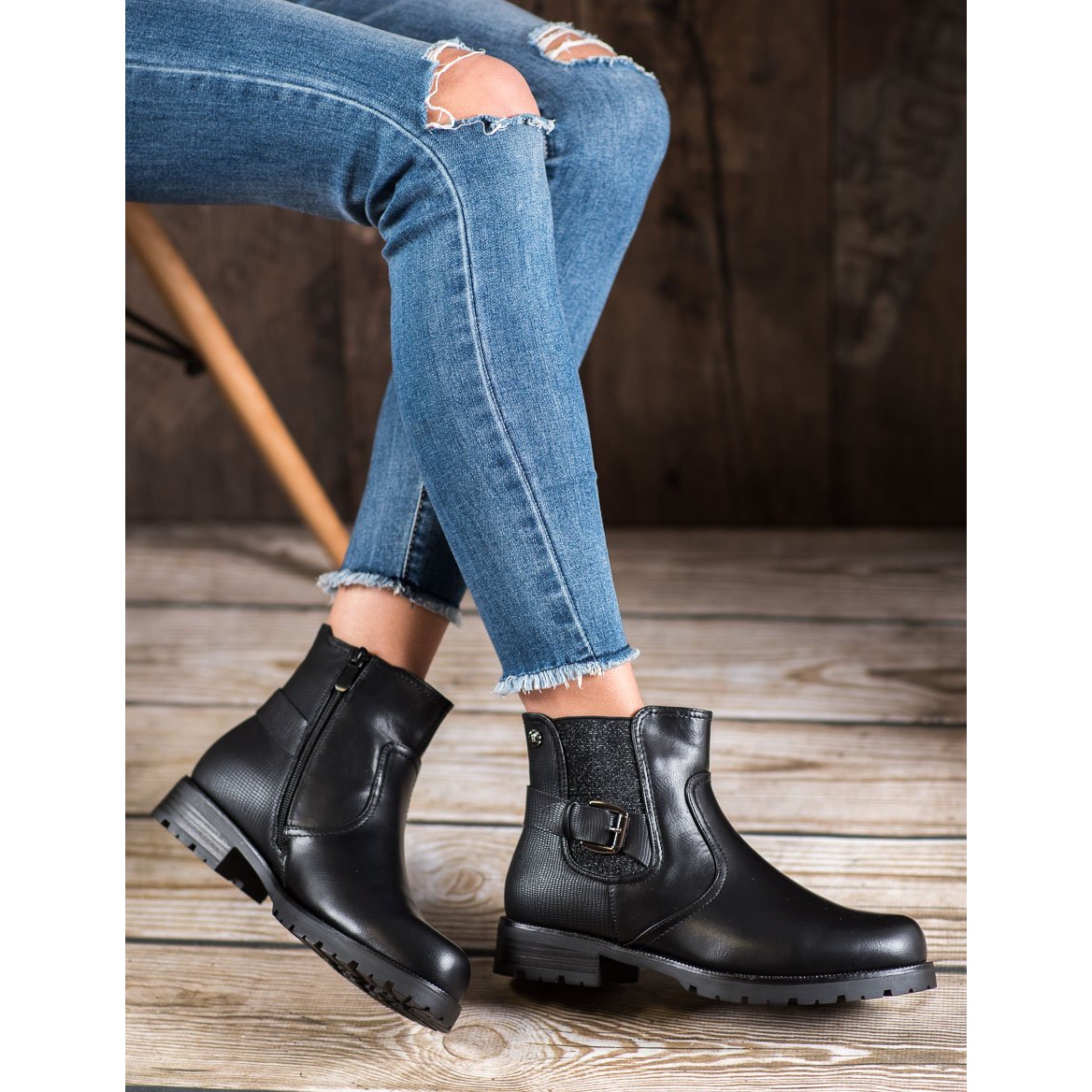 Gogo Workers cu cataramă într-o culoare neagră universală sunt pantofi perfecti pentru femeile care apreciază confortul și aspectul la modă. Confectionate din piele ecologica de inalta calitate, aceste botine se remarca nu numai prin estetica, ci si prin functionalitate, ceea ce le face o alegere ideala pentru zilele mai reci.