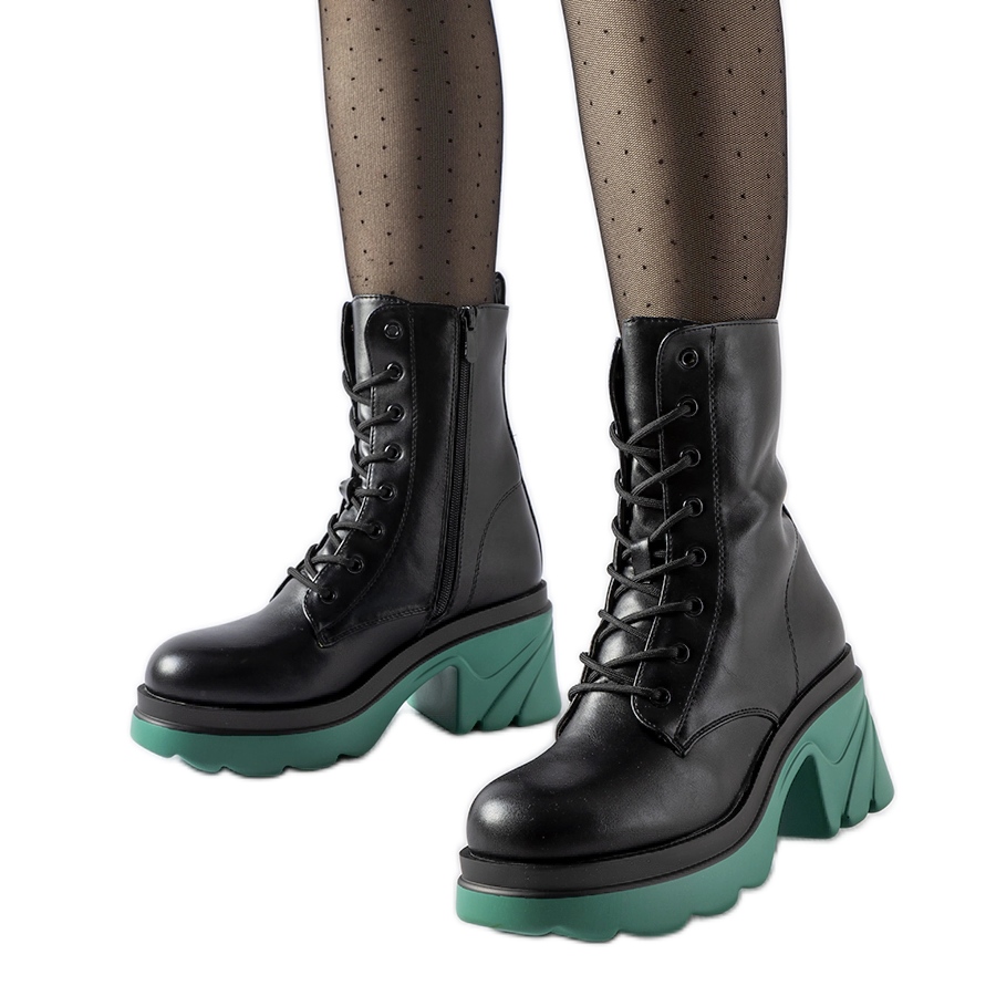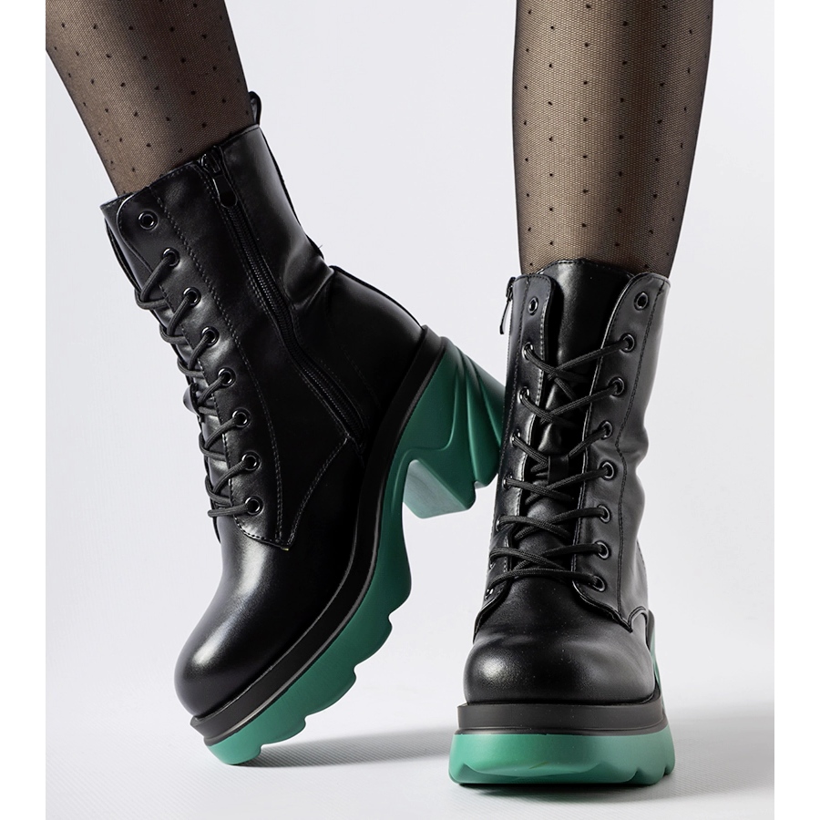 Acești lucrători sunt sus deasupra gleznei pentru un plus de sprijin și confort. Se potrivesc perfect cu o varietate de ținute - de la pantaloni largi la rochii aerisite. Culoarea neagră le face extrem de universale, iar talpa verde le conferă un caracter original.