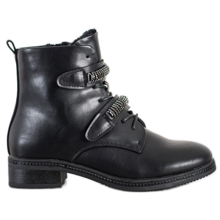 Un detaliu unic sub forma unui decor cu strasuri pe prindere le confera un caracter rock, si in acelasi timp face din acesti pantofi complementul perfect pentru stilul casual. Fermoarul și șireturile suplimentare garantează o îmbrăcare confortabilă și o potrivire perfectă.