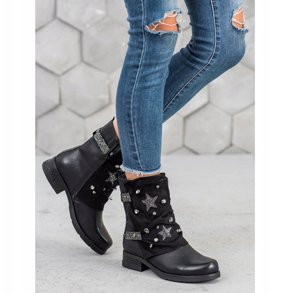 Pantofii prezentați sunt ferm în categoria casual - perfecti pentru ieșirile de zi cu zi, dar datorită originalității lor, vor completa perfect stilurile mai formale sau de seară. Aceasta este dovada că Super Mode Decorated Workers negru sunt cizme care se vor potrivi cu o gamă largă de ocazii.