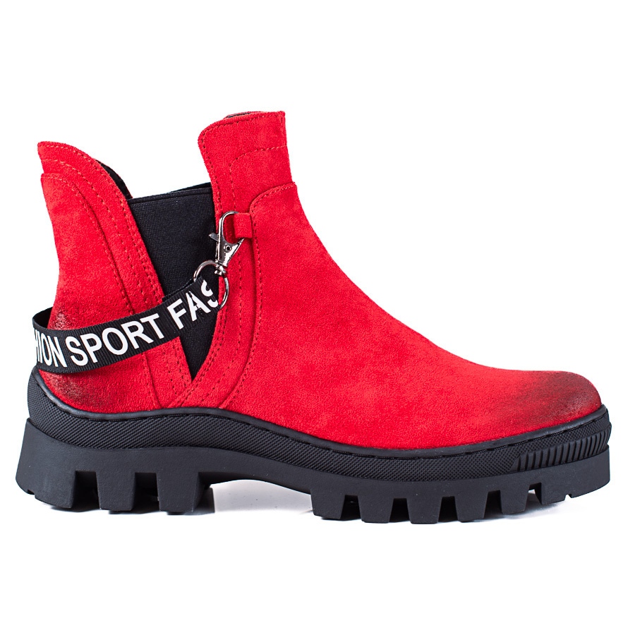 Culoarea rosie combinata cu talpa neagra face ca acest model sa se incadreze perfect in stilul casual si rock. Va satisface nevoile femeilor care caută accente originale în stilul de zi cu zi. Prevăzute cu un toc încorporat, rigid și un vârf rotund, cizmele oferă stabilitate și confort. Un toc plat înalt de 3 cm și o platformă de 2 cm le fac perfecte pentru purtarea de zi cu zi.