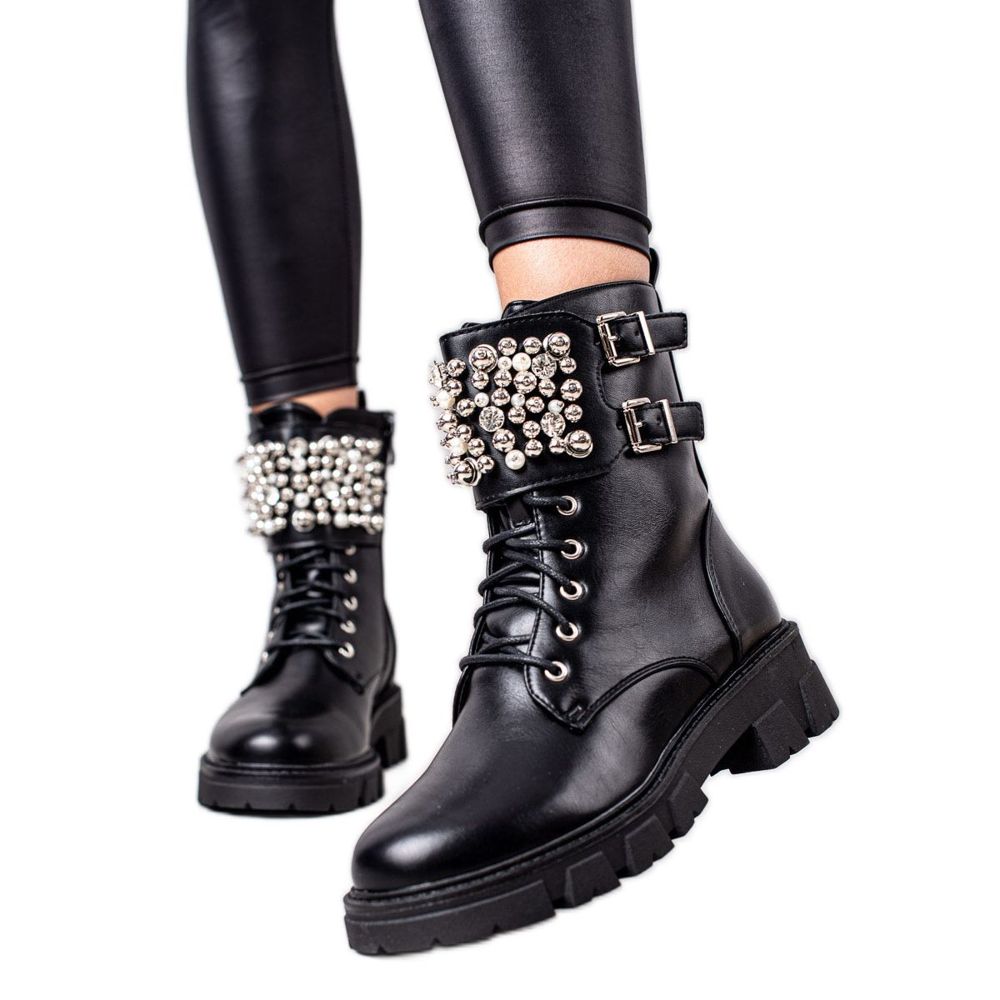 Culoarea lor neagră le face să se potrivească cu aproape orice stil, de la casual la mai elegant. Decorate cu strasuri, strasuri si crampoane, aceste lucratoare atrag ochiul si adauga o nota de eleganta oricarei tinute.