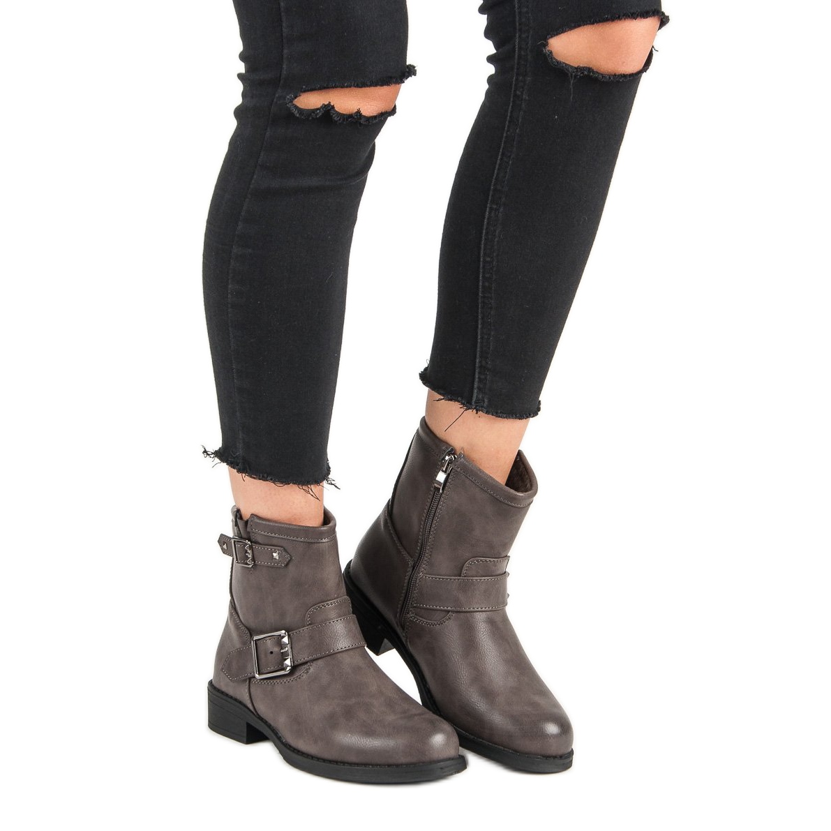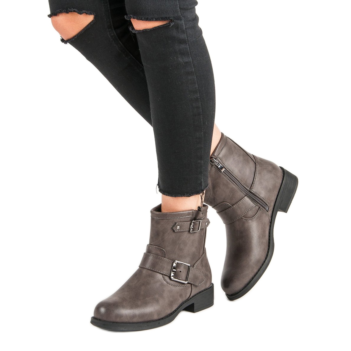 Cizmele de muncitori gri sunt o alegere perfecta pentru femeile care apreciaza atat stilul cat si confortul. Confectionati din piele ecologica de inalta calitate intr-o culoare gri la moda, acesti pantofi sunt complementul perfect pentru orice stil de toamna-iarna.