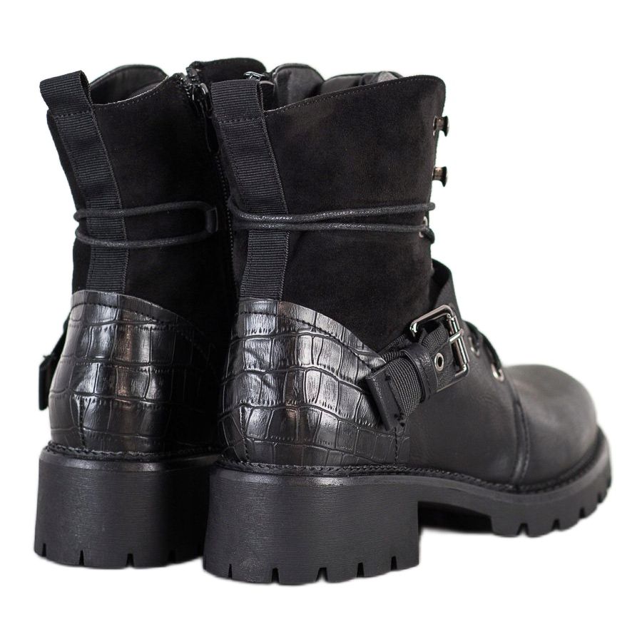 Descoperiți moda și confortul într-un singur loc datorită pantofilor negri pentru muncitori de la brandul Kayla! Aceste botine stilate urmează ultimele tendințe, combinând stilul casual și rock, ceea ce le face o alegere perfectă pentru sezonul toamnă/iarnă.