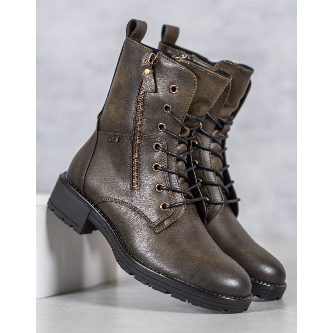 Descoperiți muncitori unici Vinceza într-o frumoasă culoare verde putred, care cu siguranță va deveni elementul dumneavoastră preferat din garderoba dumneavoastră. Aceste botine de damă combină inspirațiile militare la modă cu stilul de zi cu zi, ceea ce le face potrivite pentru multe stiluri diferite - atât casual, cât și mai rock.