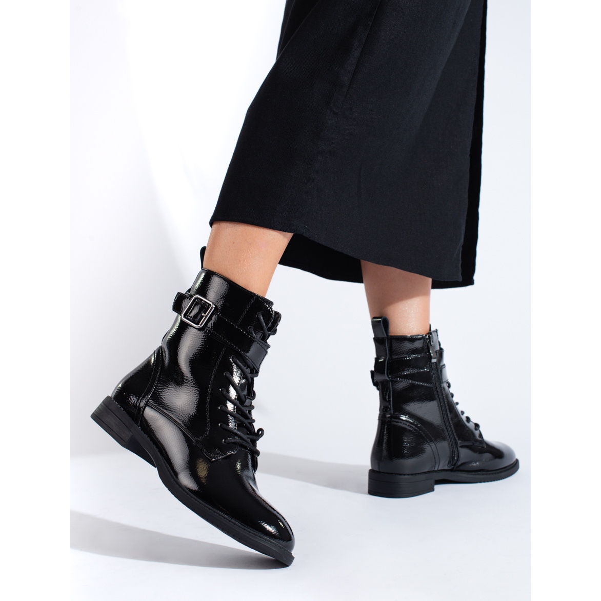 Muncitoarele Shelovet lăcuite în negru sunt o propunere pentru femeile care apreciază combinația dintre stilul casual cu un caracter rock. Aceste cizme solid realizate sunt un must-have în garderoba oricărui iubitor de accesorii expresive care nu se teme să-și sublinieze individualismul și pasiunea pentru un look nonconformist.