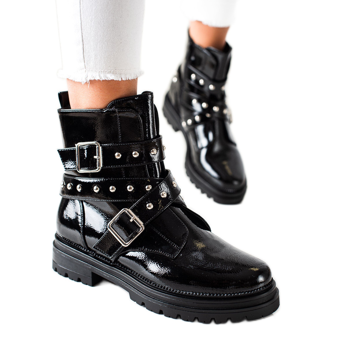 Vă prezentăm Muncitori Lăcuiți Negru cu Strasuri, care sunt o alegere perfectă pentru femeile care prețuiesc stilul și confortul. Aceste cizme unice de la renumitul producător Bestelle combină un caracter rock cu funcționalitatea de zi cu zi, ceea ce le face complementul perfect pentru orice stil de toamnă-iarnă.