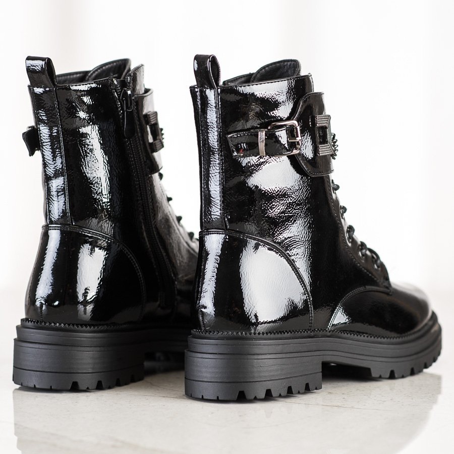 Descoperiți stilul și confortul unic în noua colecție S. BARSKA! Cizmele de muncitori lacuite cu un lant in negru sunt un must-have in garderoba ta pentru sezonul toamna/iarna. Aceste cizme extraordinare combină perfect stilul casual, rock și fashion, adăugând caracter ținutelor tale.
