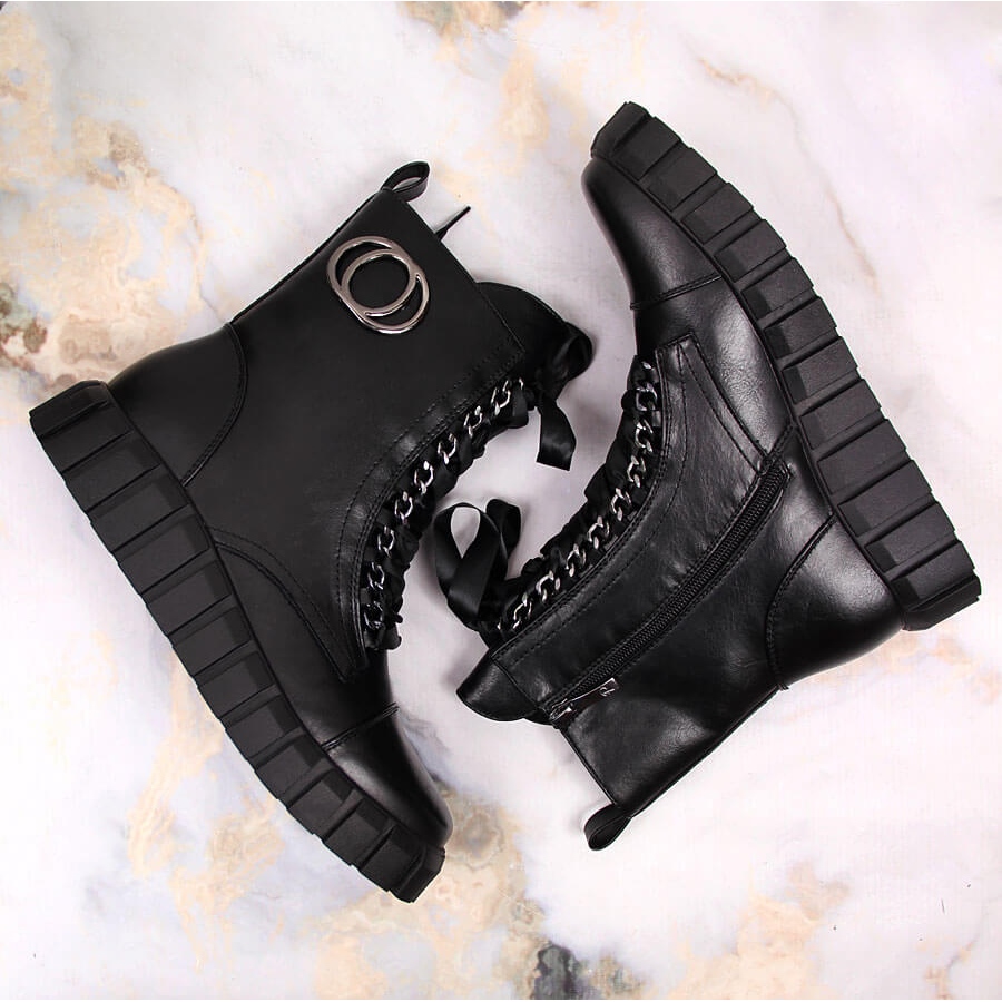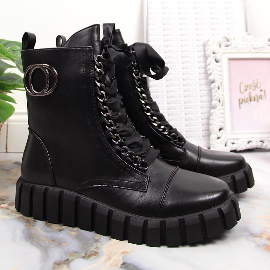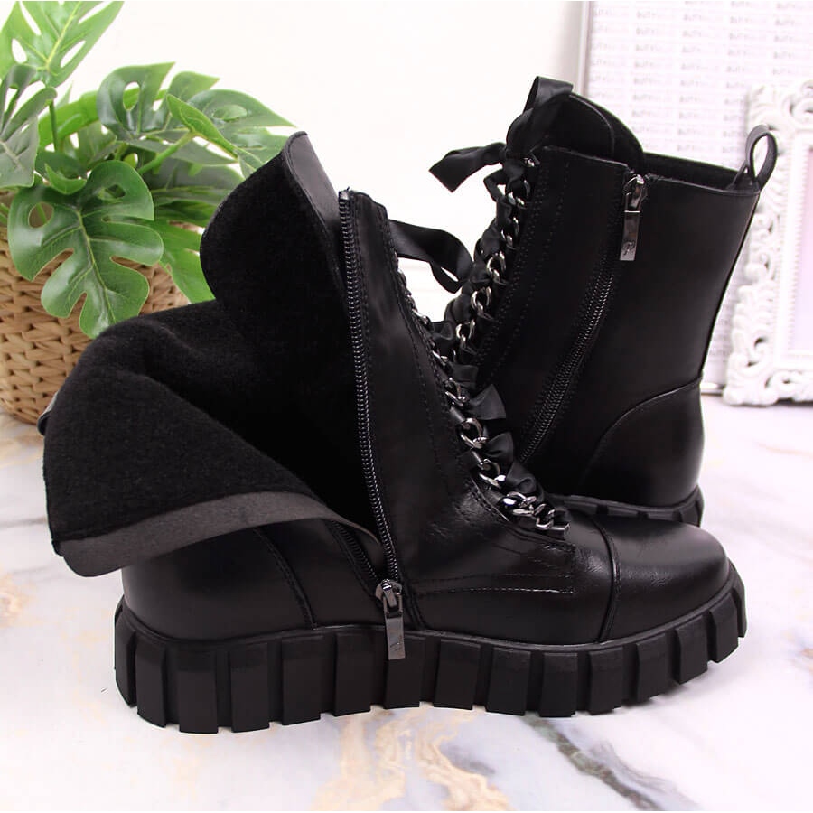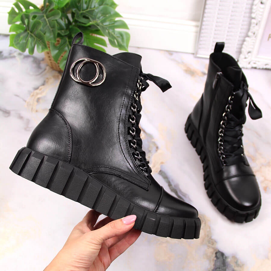 Acest model se caracterizează printr-un vârf clasic, rotund și un fermoar practic și închidere cu șireturi, ceea ce îl face ușor de îmbrăcat și ajustat la picior. Culoarea lor universală neagră le face să se potrivească perfect cu diverse stiluri - de la blugi casual la rochii elegante.