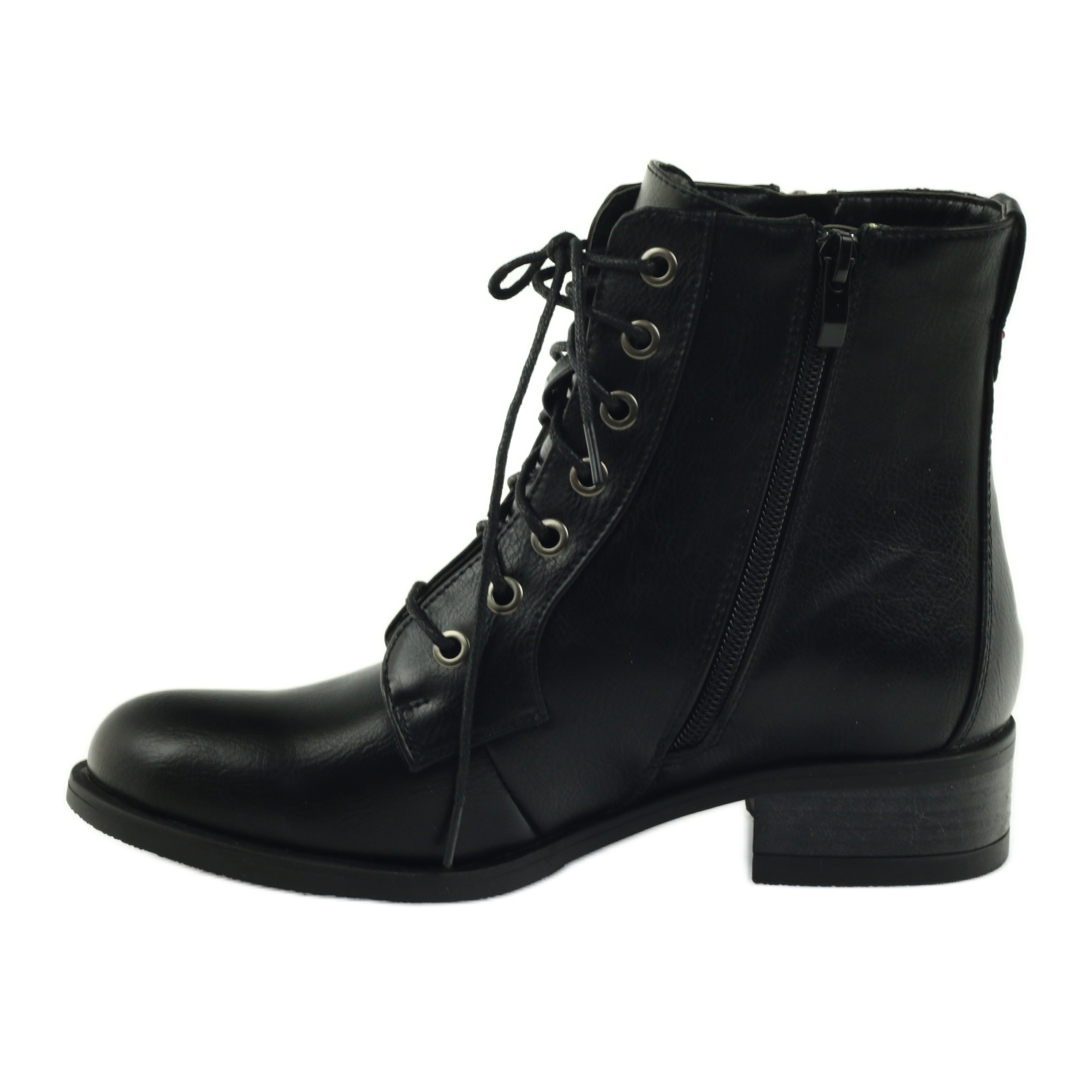 Pantalonii negri cu fermoar M.Daszyński SA94 sunt alegerea perfectă pentru femeile care apreciază stilul și confortul în utilizarea de zi cu zi. Aceste cizme la modă din piele ecologică de înaltă calitate garantează nu doar un aspect estetic, ci și durabilitate și siguranță. Interiorul pantofilor este izolat cu fleece pentru încălțăminte, care asigură confort termic chiar și în zilele mai reci.