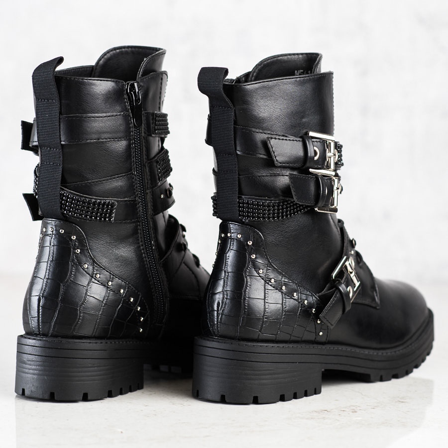 Eleganța se întâlnește cu caracterul practic în modelul Erynn Black Workers, perfect pentru purtarea de zi cu zi. Confecționate din imitație de piele de înaltă calitate, aceste botine de damă combină stilul casual, rock și fashion, ceea ce le face o completare perfectă pentru orice stil de toamnă și iarnă.