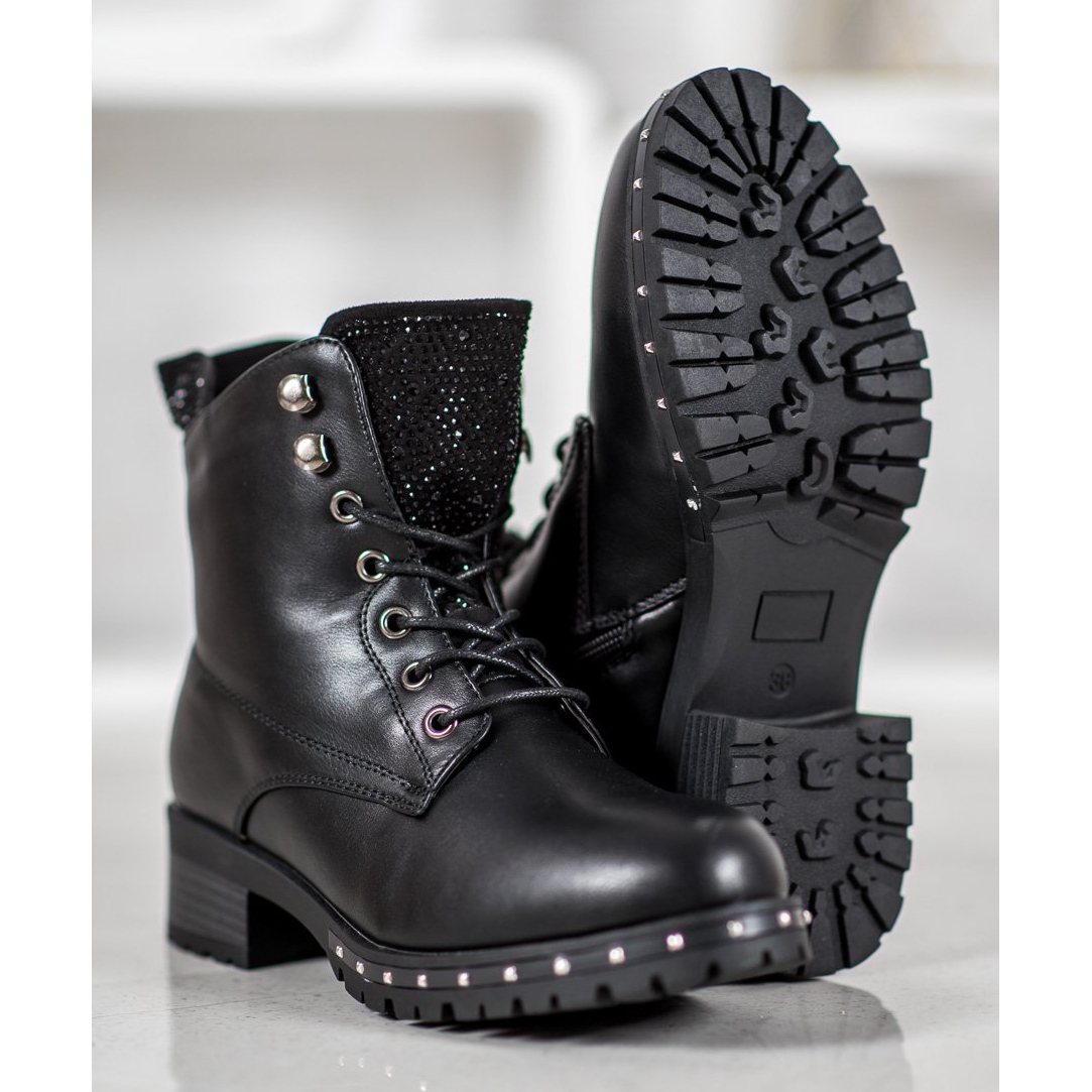 Va prezentam cizme unice de muncitor J. Star in negru cu cristale, care cu siguranta vor incanta fiecare femeie la moda. Acești pantofi unici sunt o alegere excelentă pentru femeile care apreciază confortul și stilul, iar designul lor lejer îi face perfecți pentru utilizarea de zi cu zi.