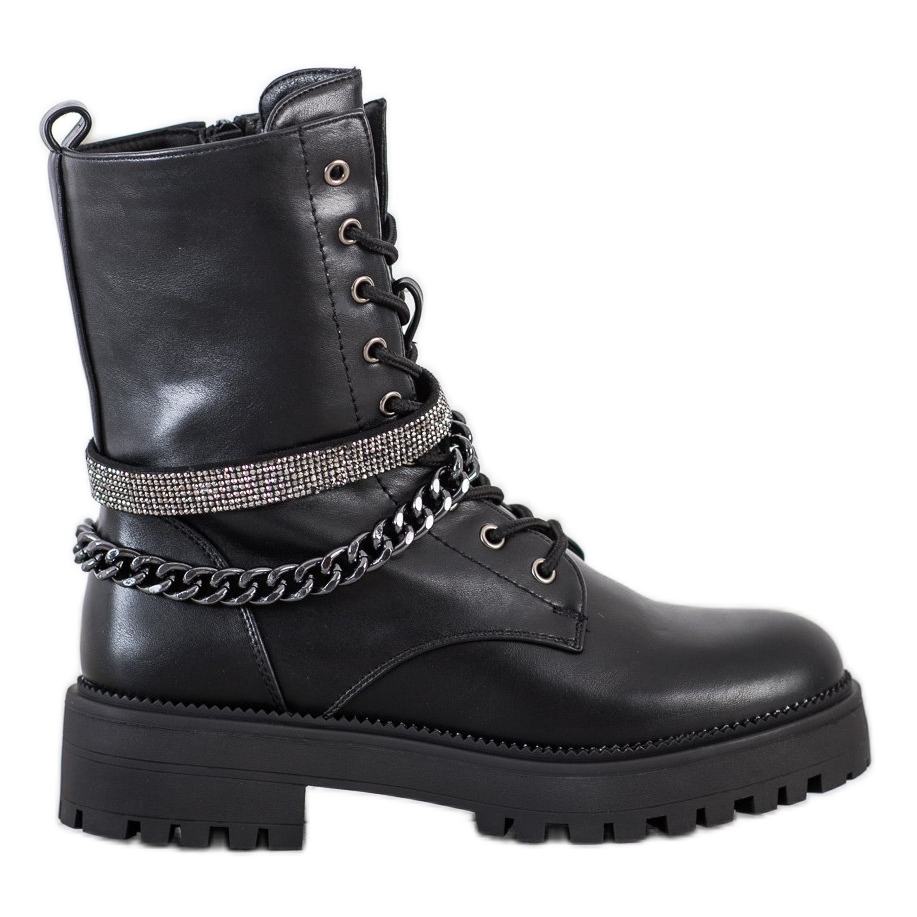 Seastar Black Workers With Chain este o propunere ideală pentru femeile care apreciază aspectul și confortul la modă. Aceste cizme negre elegante sunt realizate din piele ecologică de înaltă calitate, ceea ce le face nu numai estetice, ci și ecologice.