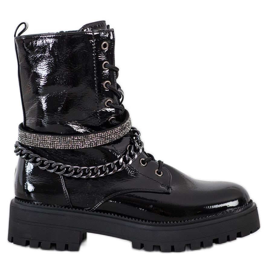 Vă prezentăm Seastar Black Workers with Chain - o combinație perfectă de eleganță și stil rock, perfectă pentru utilizarea de zi cu zi. Aceste cizme la modă, disponibile într-o culoare clasică neagră, se remarcă printr-un lanț decorativ și cristale subtile care le conferă un caracter unic.