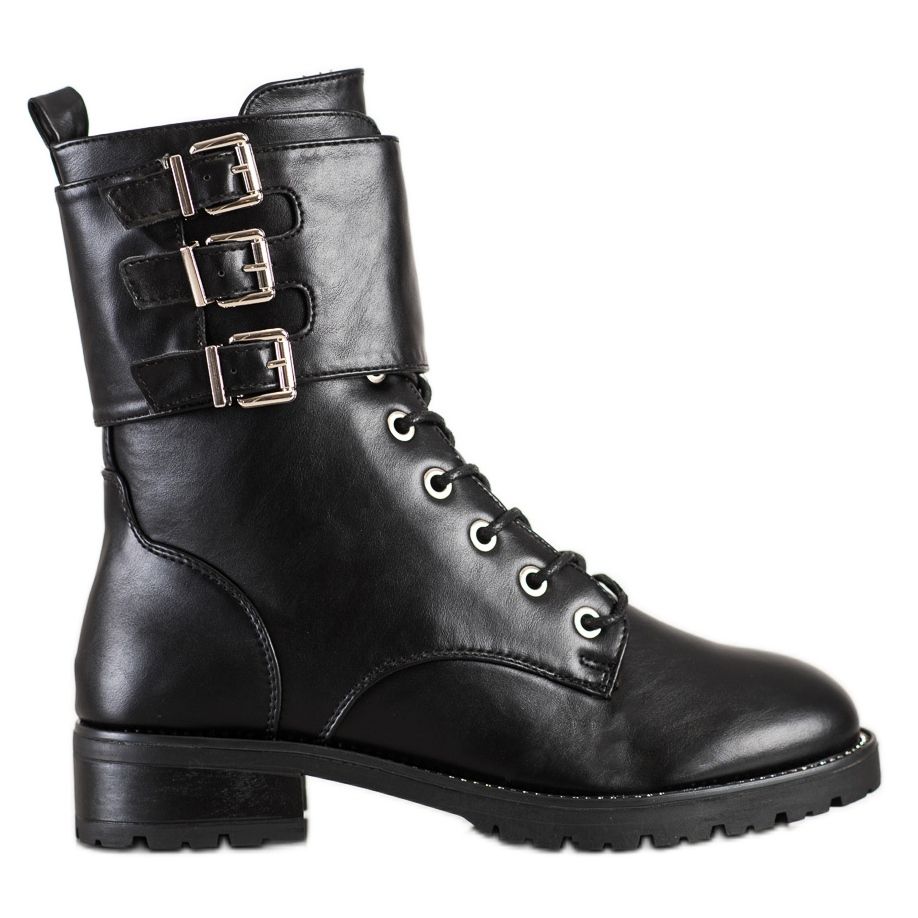 Designul detaliat al cizmelor include o cataramă decorativă și strasuri atrăgătoare care le conferă un caracter unic și ies în evidență în stilul de zi cu zi. Închiderea cu fermoar și detaliile cu șireturi îl fac ușor de pus și de ajustat la picior.