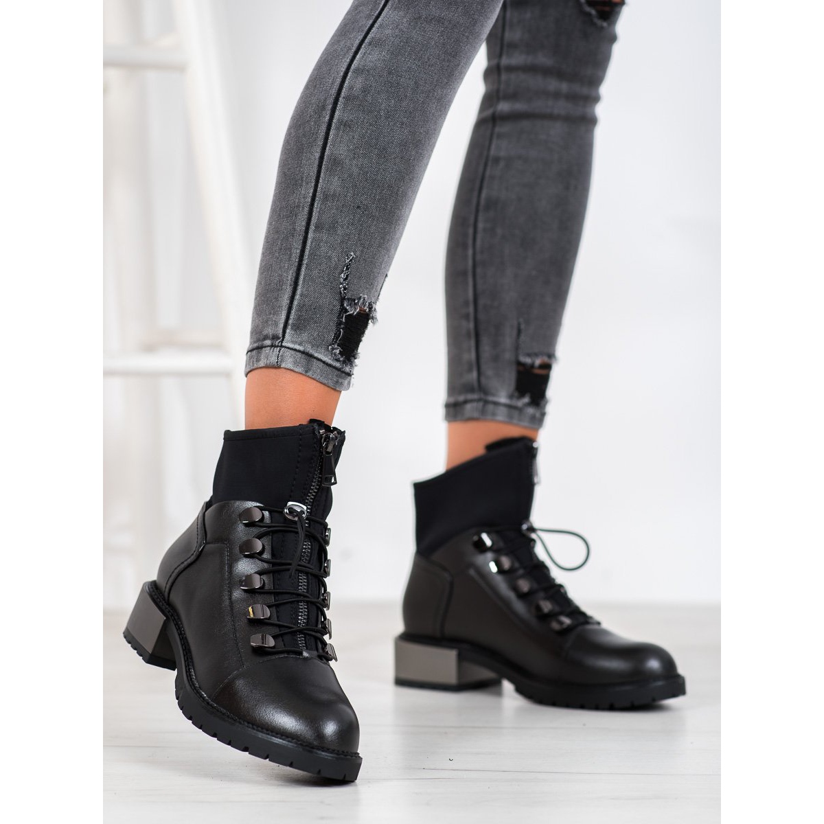 Datorită culorii negre universale, lucrătorii din modă pot fi ușor combinați cu diverse stiluri - de la casual la mai rock. Înălțimea superioară de 11-12 cm face ca aceste cizme să se potrivească perfect la gleznă, asigurând în același timp o izolare adecvată.