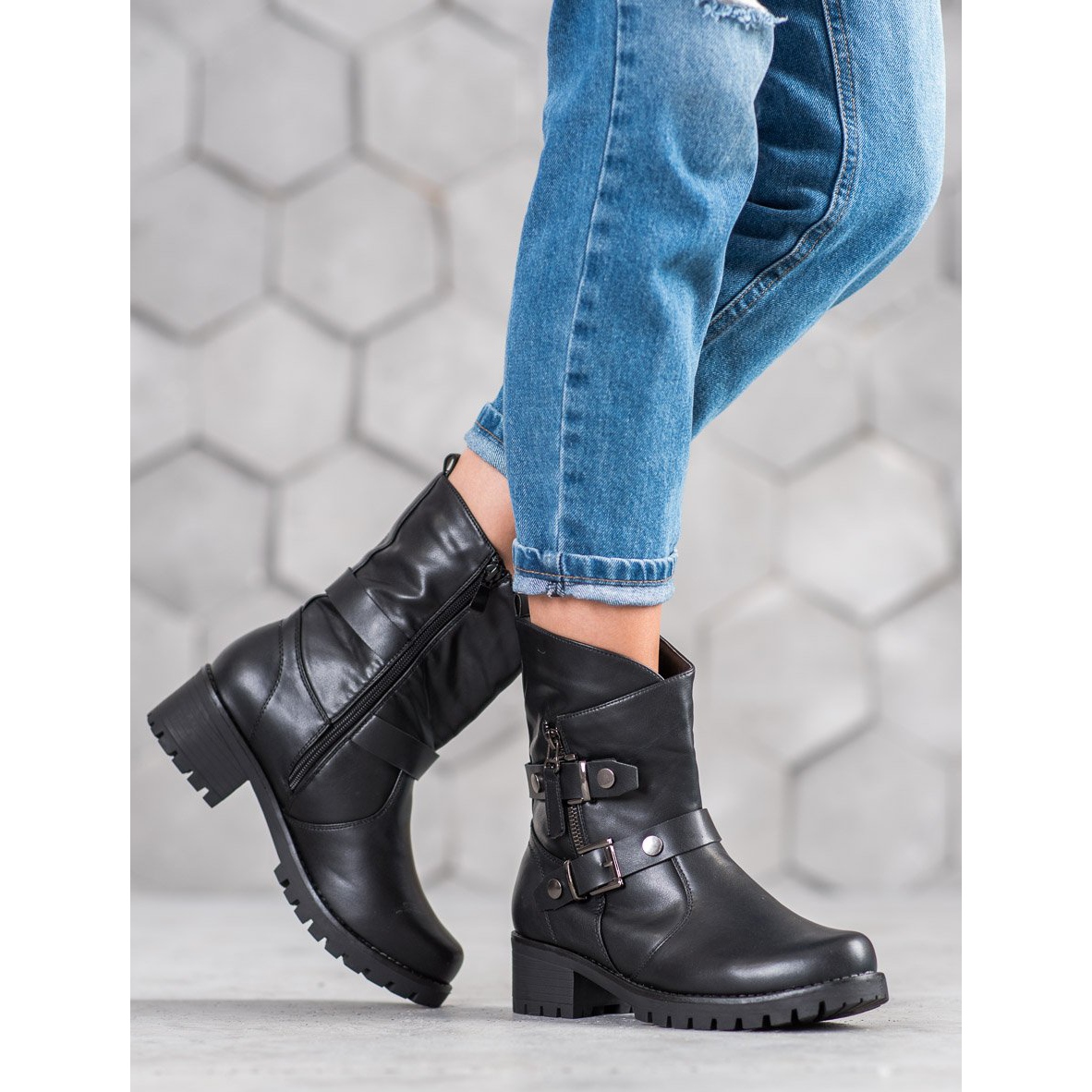 Vă prezentăm muncitorii Nio Nio în negru - încălțăminte perfectă pentru o femeie modernă care prețuiește confortul și stilul. Confectionate din piele ecologica de inalta calitate, aceste botine se caracterizeaza nu numai prin aspectul lor la moda, ci si prin functionalitatea oferita de partea superioara inalta. Datorită acesteia, picioarele tale vor fi protejate împotriva condițiilor meteorologice nefavorabile și te vei simți confortabil chiar și în zilele mai reci.