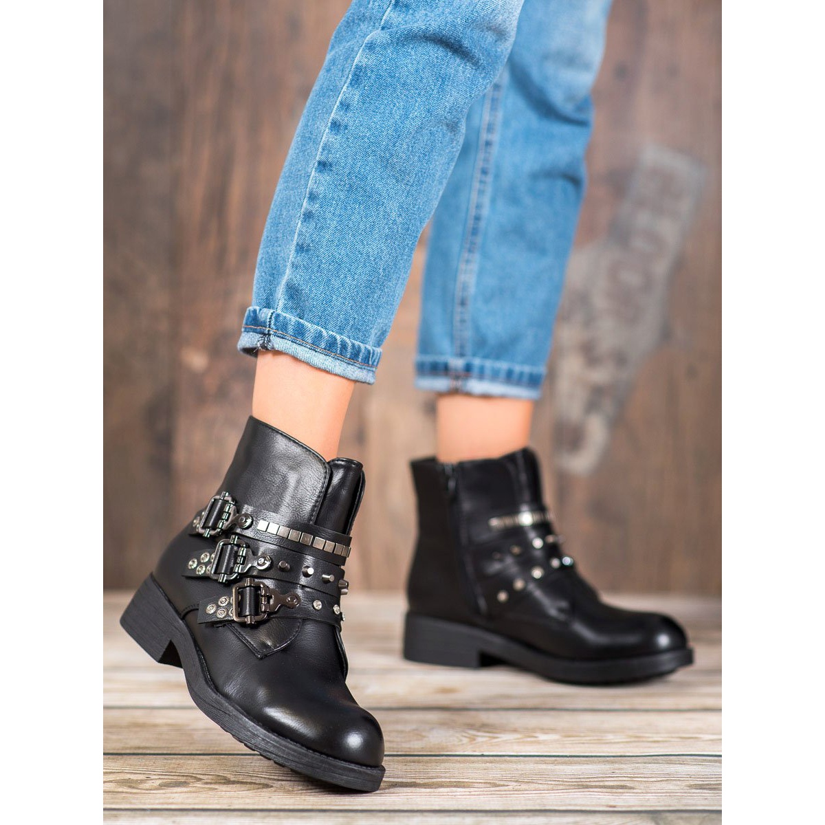 Cizmele de muncitori negre de la SHELOVET sunt un must-have pentru fiecare femeie care apreciaza confortul, stilul si versatilitatea. Sunt perfecte atât pentru stilul rock, cât și pentru stilul clasic. Inchise cu fermoar, sunt practice si usor de pus. Investește în acești pantofi unici și subliniază-ți stilul individual!