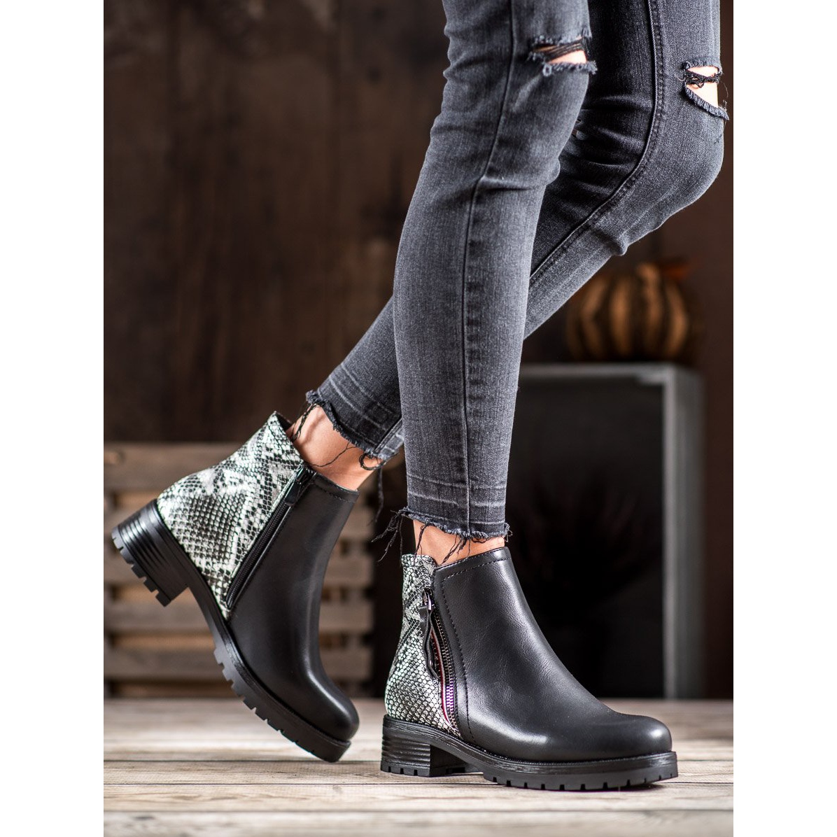 Lucrătorii SHELOVET pe platforma Snake Print, negru, sunt sinonime cu stil și confort pentru fiecare femeie care prețuiește originalitatea și confortul. Fabricate din piele ecologică de înaltă calitate, aceste cizme captivează prin designul și funcționalitatea lor unice.