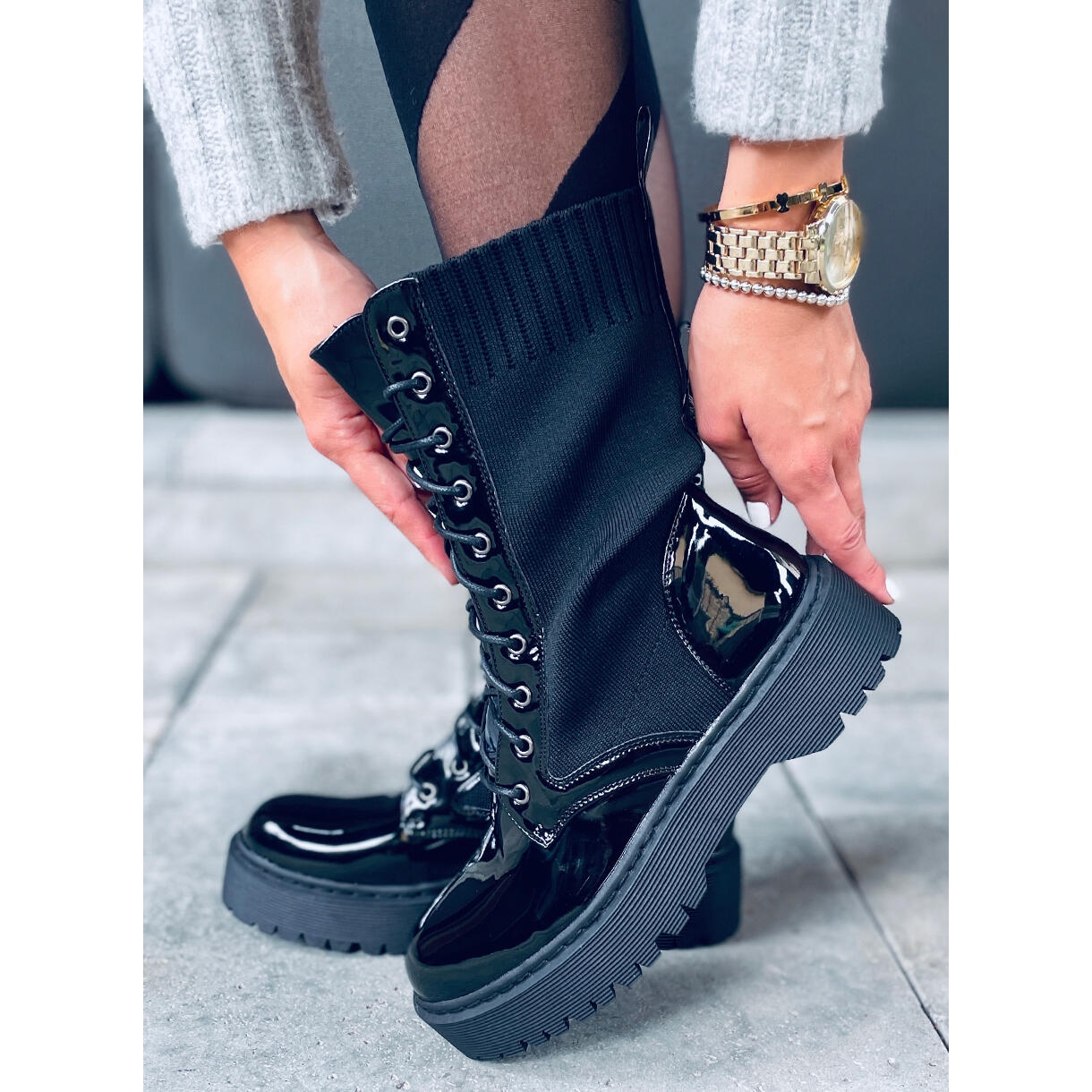 Vă prezentăm Workery Soks Black - botine de damă perfecte cu șireturi care combină stilul la modă și confortul. Acești pantofi unici au o parte superioară a șosetei care se potrivește perfect piciorului, oferind confort atunci când sunt purtate. Se evidențiază față de alte modele datorită inserțiilor strălucitoare, lăcuite, care adaugă eleganță și originalitate.