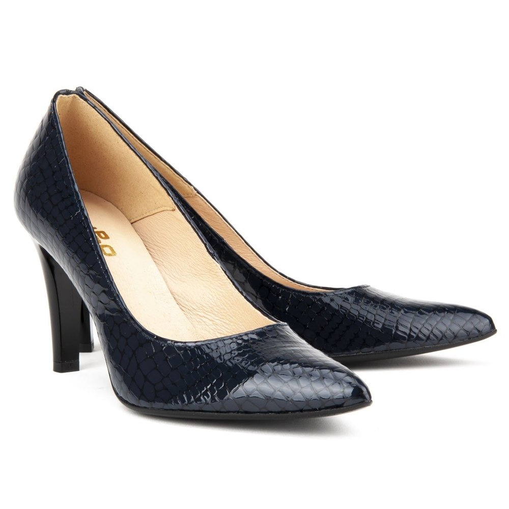 Modelul F155 Navy Crocodile din colectia KeeShoes este perfect pentru ocazii elegante, iar designul sau clasic il face sa se potriveasca cu multe stiluri - de la rochii la pantaloni. Datorita talpii sintetice, pompele sunt usoare si flexibile, ceea ce asigura stabilitate la fiecare pas.