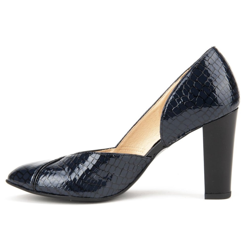 Pompele F280 se disting și printr-un model original în stil animal care le conferă caracter. Culoarea bleumarin face ca pantofii sa fie extrem de universali si pot fi usor combinati cu multe stiluri. Datorită înălțimii superioare de 7 cm și lățimii G, pompele se potrivesc perfect piciorului, oferind confort la purtare.