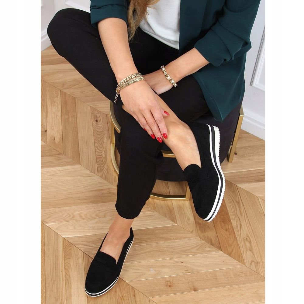Black 1151 Mocasinii negri cu talpă înaltă sunt o alegere perfectă pentru fiecare femeie care apreciază combinația dintre stilul clasic și modern. Acesti pantofi eleganti din piele intoarsa ecologica nu atrag doar atentia prin designul lor minimalist, dar ofera si un confort extraordinar la purtare datorita insertiei interioare moale.