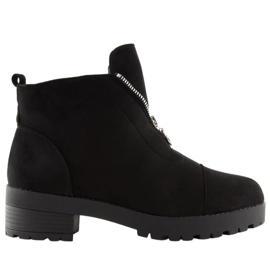 2017-3 Botinele negre cu talpă înaltă sunt o completare perfectă pentru garderoba oricărei femei. Acesti pantofi eleganti si stilati, din piele intoarsa ecologica, imbina clasicul cu designul modern. Talpa mai groasă, prinsă, asigură confort și stabilitate, iar înălțimea de 4,5 cm le face perfecte pentru utilizarea de zi cu zi.