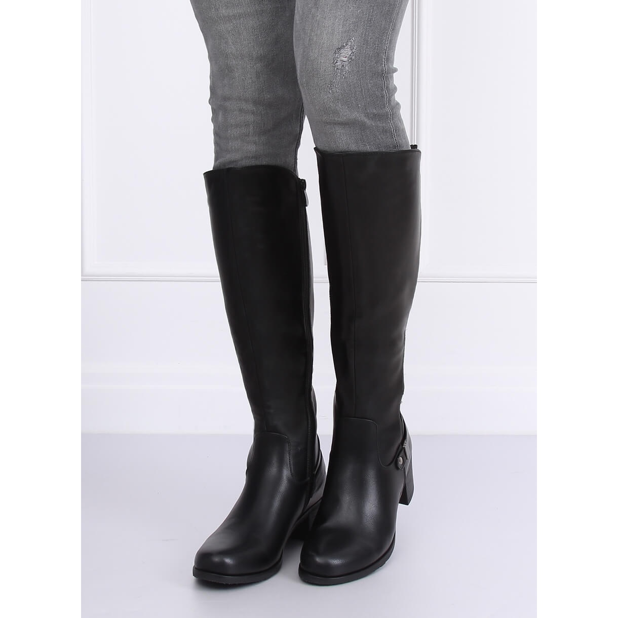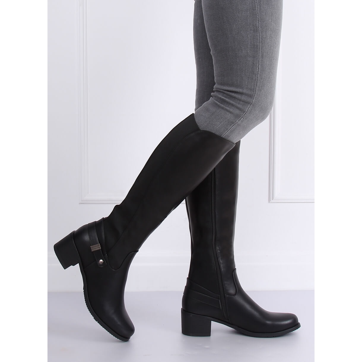 Cizme de dama negre pe toc mic cu inaltimea de 5,5 cm. O soluție excelentă este partea flexibilă a părții superioare, datorită căreia poți asorta perfect pantofii cu piciorul. Fixarea practică a fermoarelor pe lateral este un alt avantaj al acestora. Nu vă mai convingeți - ar trebui să vă fie azi! Material exterior - piele ecologică + cauciuc. Subsuit - căptușeală din spumă.