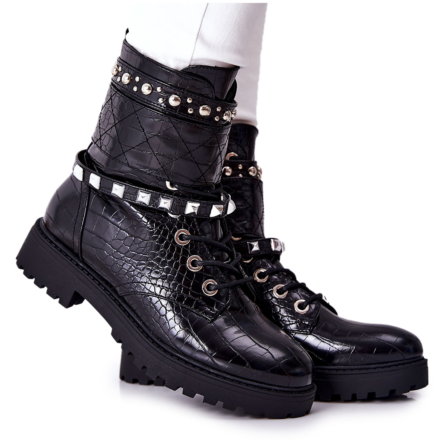 Detalii: PG1 Nephele Negru Cizme Călduțe Muncitori Cu Știfturi