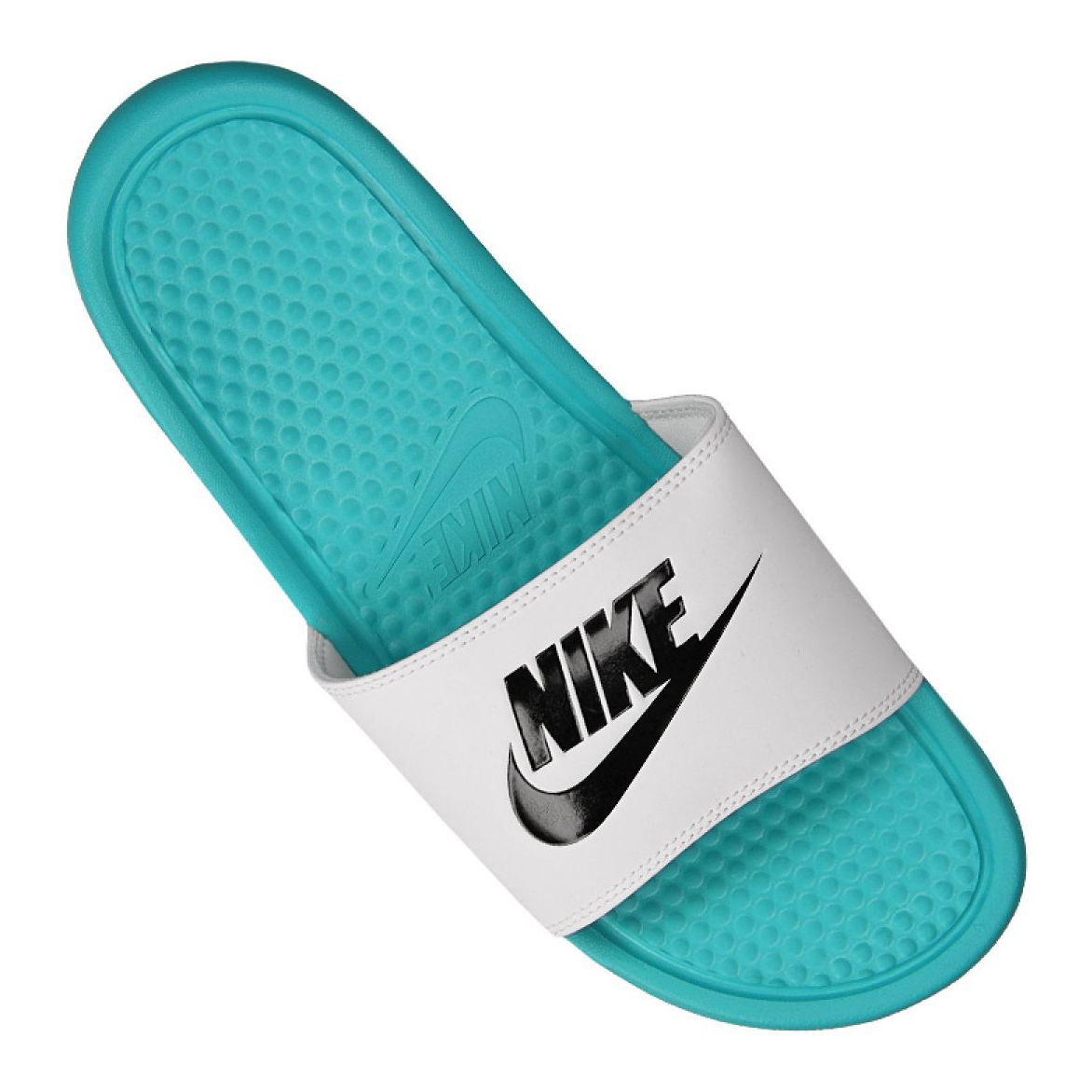 Slapii Nike Benassi JDI Slide 343880-303 în alb și verde-turcoaz sunt alegerea perfectă pentru bărbații care apreciază confortul și stilul. Aceste șlapi ușoare de piscină sunt perfecte atât pentru plajă, cât și pentru utilizarea de zi cu zi.
