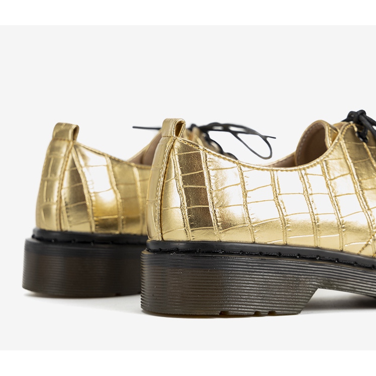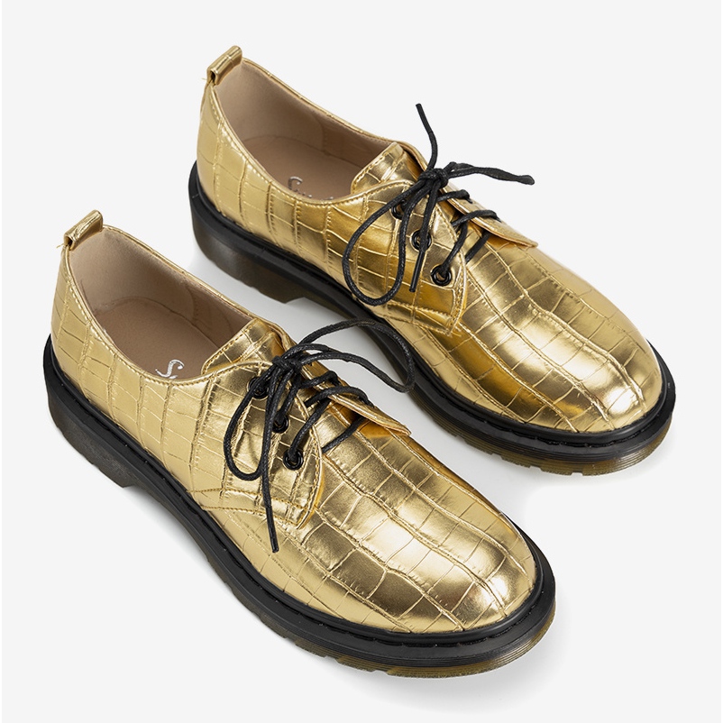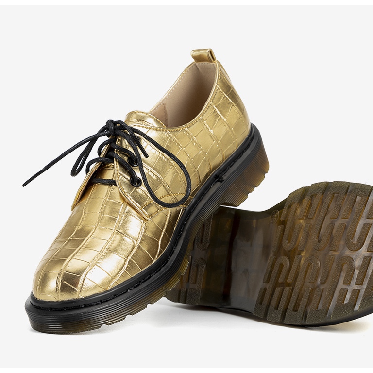Detalii: Oxfords aurii în modelul pielii de crocodil Flaure de aur