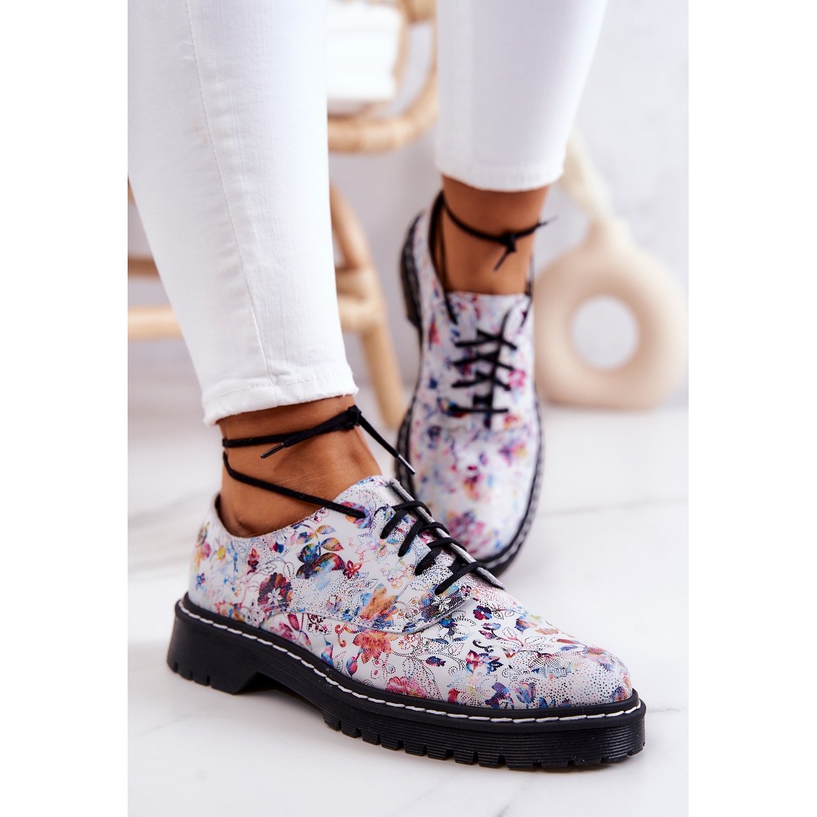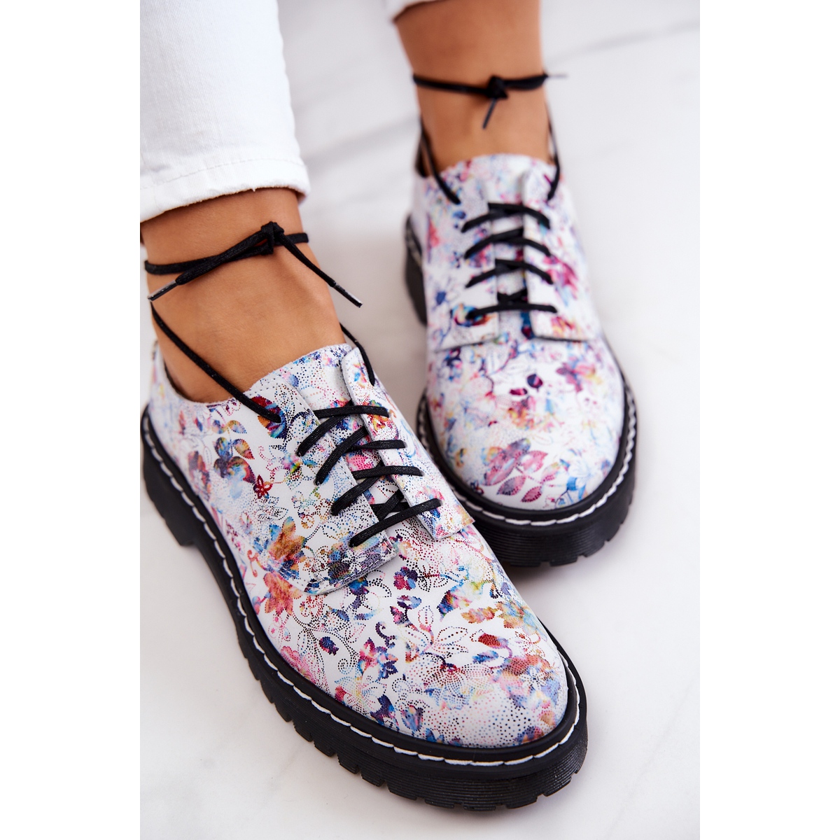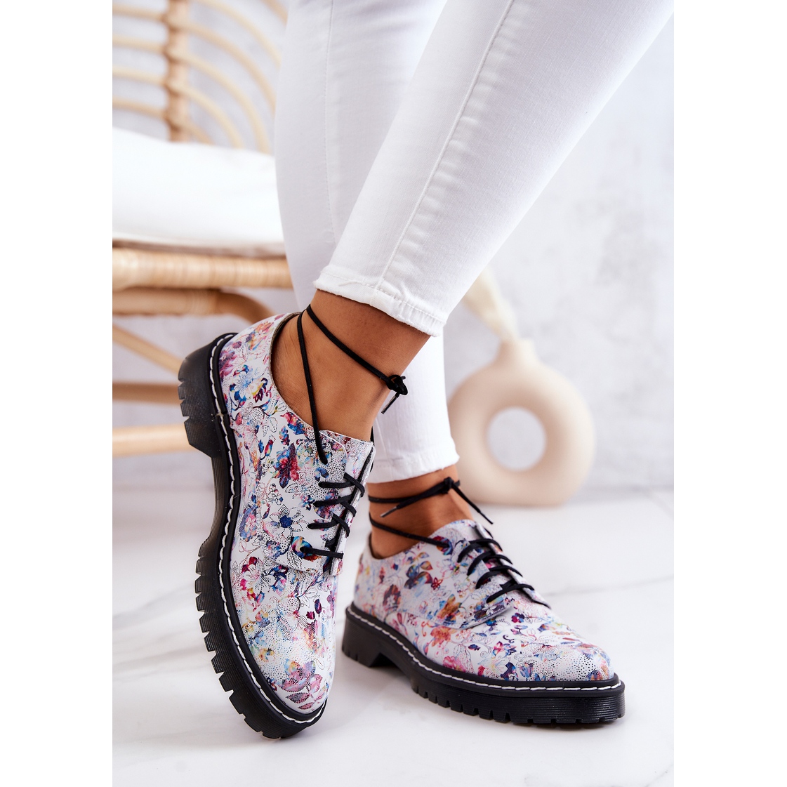 Pantofii Oxford din piele de dama Maciejka 4087A-38 sunt alegerea perfecta pentru femeile care apreciaza stilul si confortul. Acești pantofi albi unici cu un model floral multicolor sunt complementul perfect pentru orice stil de vară și primăvară, aducându-i prospețime și bucurie.