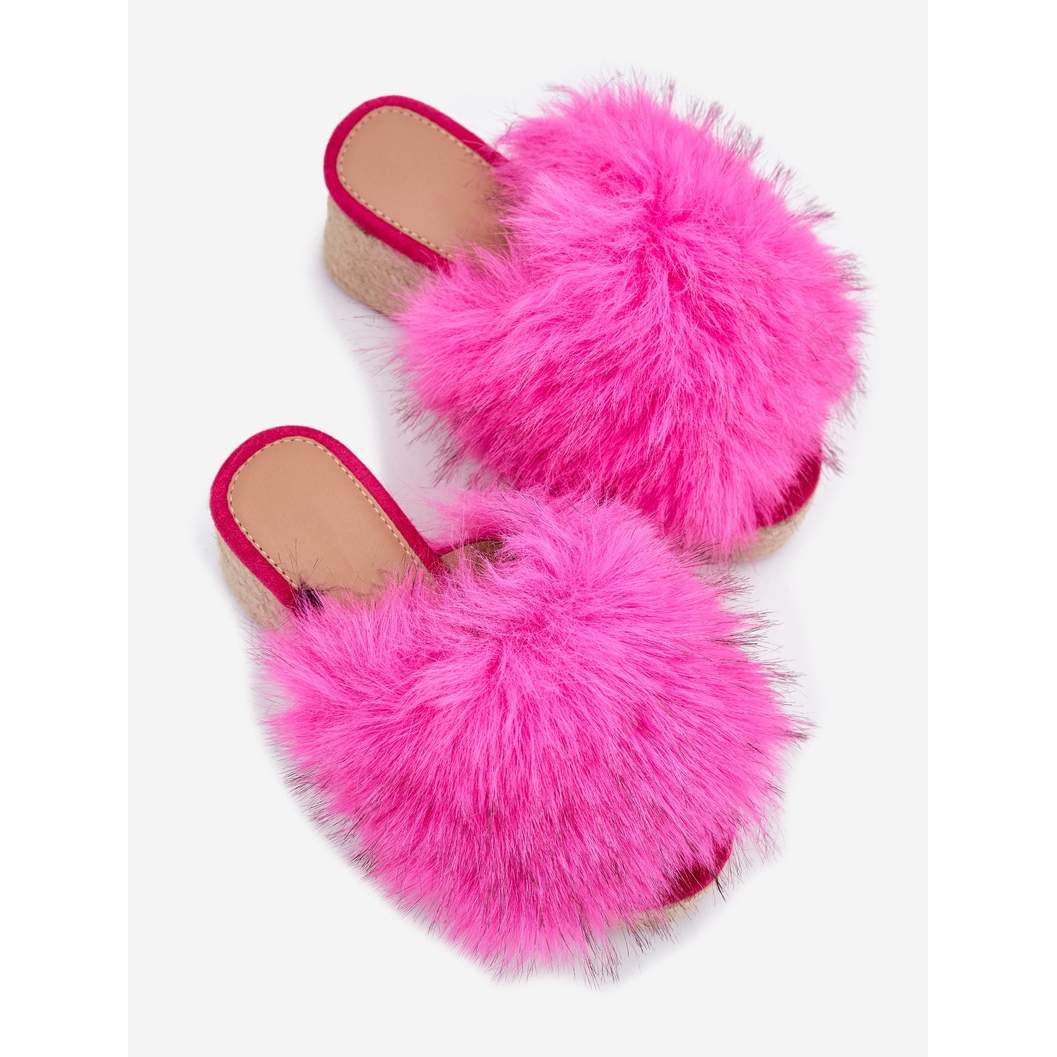 Descoperiți un farmec de vară datorită panelor pentru femei cu blană Fuchsia! Aceste flip -flop -uri la modă sunt alegerea perfectă pentru zilele calde, care se încântă cu designul și confortul lor de a purta. Situate pe o pană cu o înălțime de 8,5 cm, cu o platformă împletită, acestea adaugă ușurință oricărei stilizări, făcându -ne să ne observăm în mulțime.