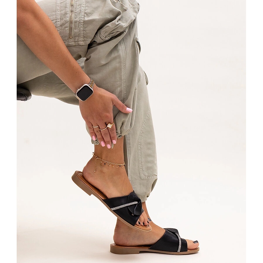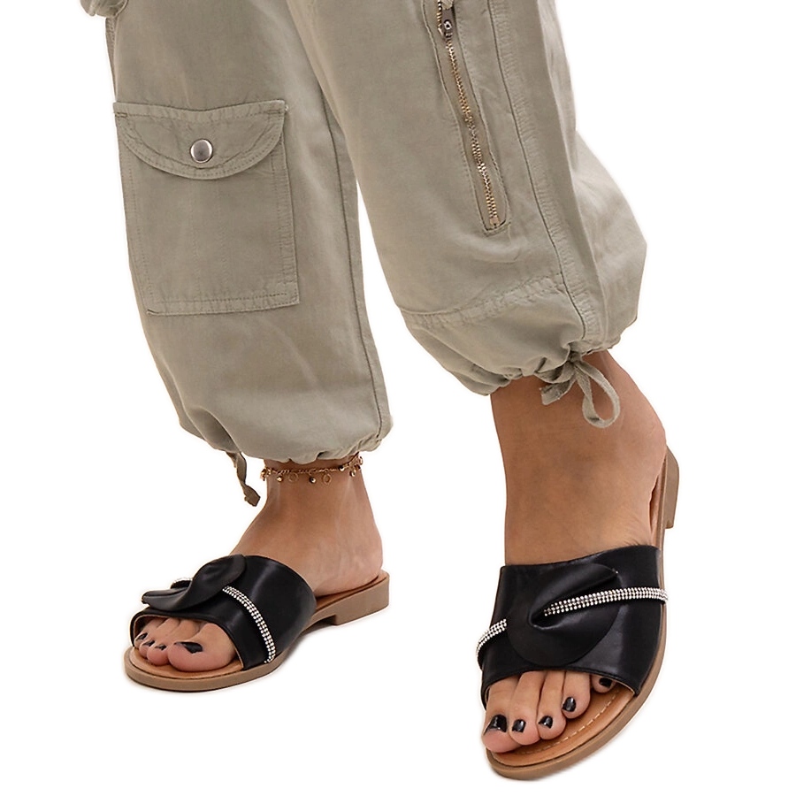 Faceți cunoștință cu flip -flops -ul decorat cu o centură cu zirconii Amarari într -o culoare neagră elegantă. Este alegerea perfectă pentru zilele călduroase de vară, combinând designul la modă și confortul de a purta. Datorită degetului rotund și structurii introduse cu dungi de cauciuc, punerea și scoaterea clapelor devine extrem de simplă.