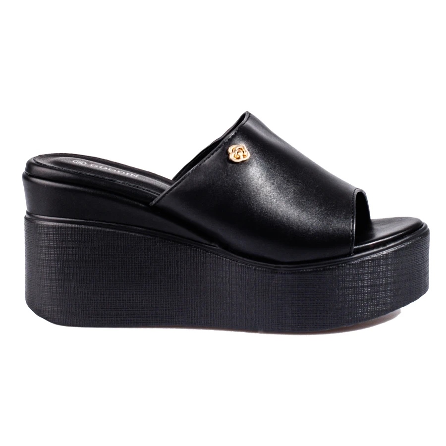 Descoperiți eleganța și confortul de zi cu zi cu sandalele cu pană Shelovet de damă într-o culoare clasică neagră. Acești șlapi la modă sunt alegerea perfectă pentru femeile care apreciază stilul și confortul. Fabricate 100% din piele ecologică de înaltă calitate, oferă nu doar un aspect grozav, ci și confort la purtare.