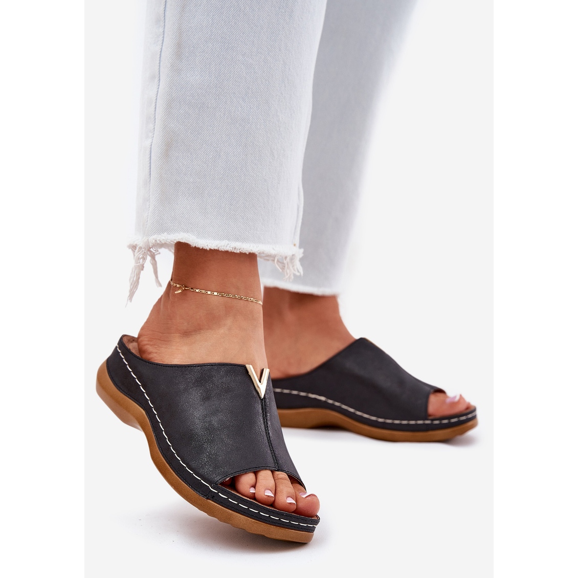 Vă prezentăm flip -flop -uri elegante pentru femei pe o pană de evenimente într -o culoare neagră atemporală care combină stilul și confortul unic. Aceste flip -flops, confecționate din piele ecologică de înaltă calitate, sunt alegerea perfectă în zilele calde în care doriți să arătați la modă, dar, în același timp, vă pasă de confort.