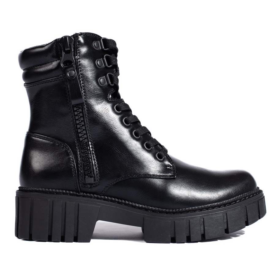 Muncitori negri eleganți și rezistenți - o combinație perfectă de stil casual și rock. Fabricate din piele organică, cu încălzire și o talpă stabilă cu o bandă de rulare, vor funcționa în zile mai răcoroase, adăugând caracter la stilizări de zi cu zi și mai expresive.