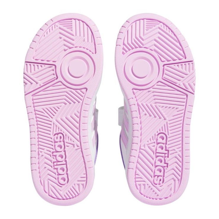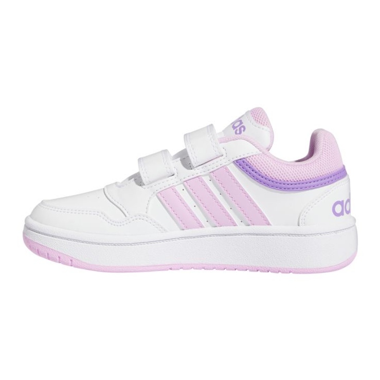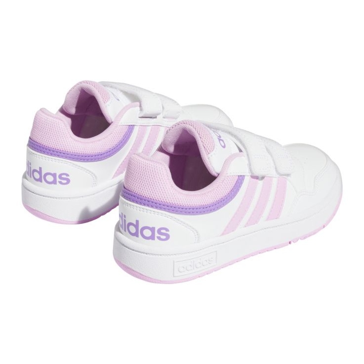Adidas Hoops 3.0 IF5319 Pantofii nu sunt doar o alegere practică, ci și un plus la modă la stilizările de zi cu zi. Combinația de culoare albă cu accente violet le face să pară extrem de elegante. Aceasta este o alegere excelentă pentru bolnavii mici de alergie, deoarece sunt confecționate din piele ecologică.