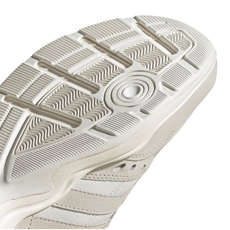 Partea superioară albă și bej este realizată dintr-o combinație de material sintetic și piele de înaltă calitate, ceea ce se traduce prin durabilitatea și stilul produsului. Semnul distinctiv al acestui model este logo-ul caracteristic adidas - trei dungi, care nu sunt doar un element decorativ, ci indică și autenticitate.