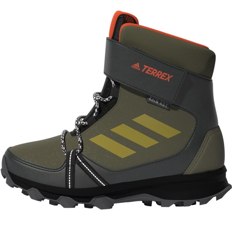 Adidas Terrex Snow CF R.RDY GZ1178 Pantofi - Green and Grey, High Winter Shoes for Children (Junior Model), conceput pentru a petrece timp activ în aer curat. Acestea combină protecția impermeabilă cu o anumită reținere a piciorului și talpa de alunecare, datorită cărora vor lucra în timpul drumeției de iarnă și vor juca pe zăpadă.