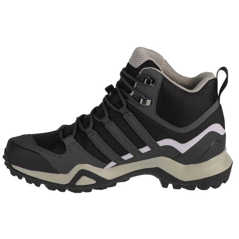 Pantofii adidas Terrex Swift R2 Mid GTX EF3357 se disting printr-o culoare neagră elegantă care se potrivește cu multe stiluri. Construcția înaltă a pantofilor protejează suplimentar glezna, ceea ce este important atunci când parcurgeți trasee solicitante.