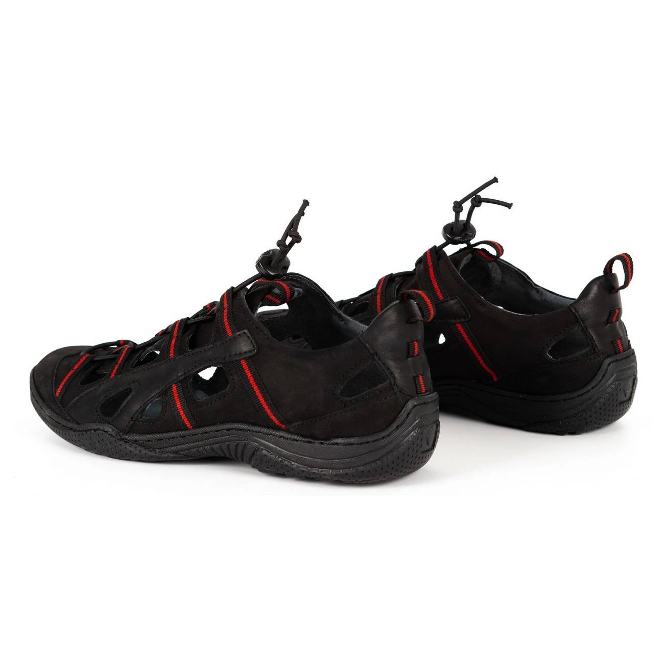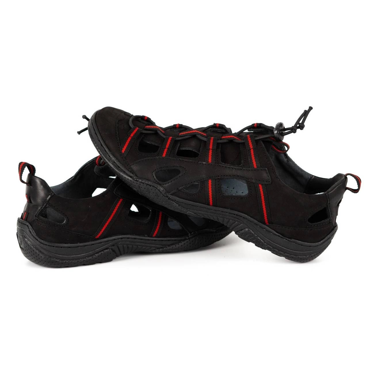 Sandale pentru bărbați eleganți Kampol, modelul de 26kam, combină culorile clasice, negre, cu un model deschis, deschis, care îmbunătățește ventilația piciorului și oferă lejeritate a încălțămintei. Realizat în întregime din piele naturală (extern și introduceți), introdus confortabil - perfect pentru zile calde, când contează confortul și estetica.