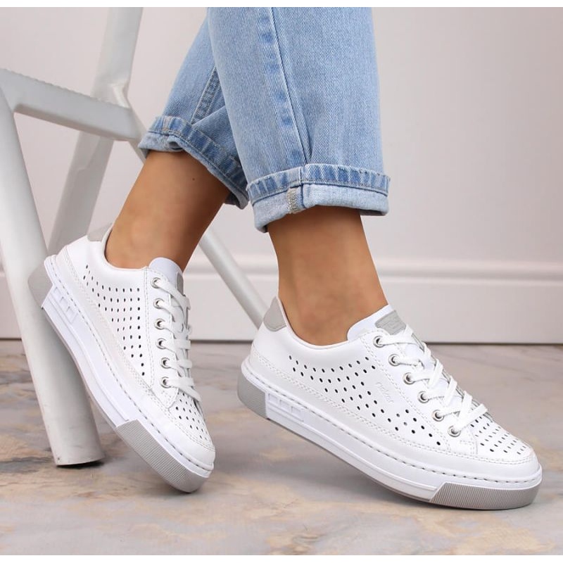 Detalii: Pantofi alb din piele ajurata Rieker W RKR642
