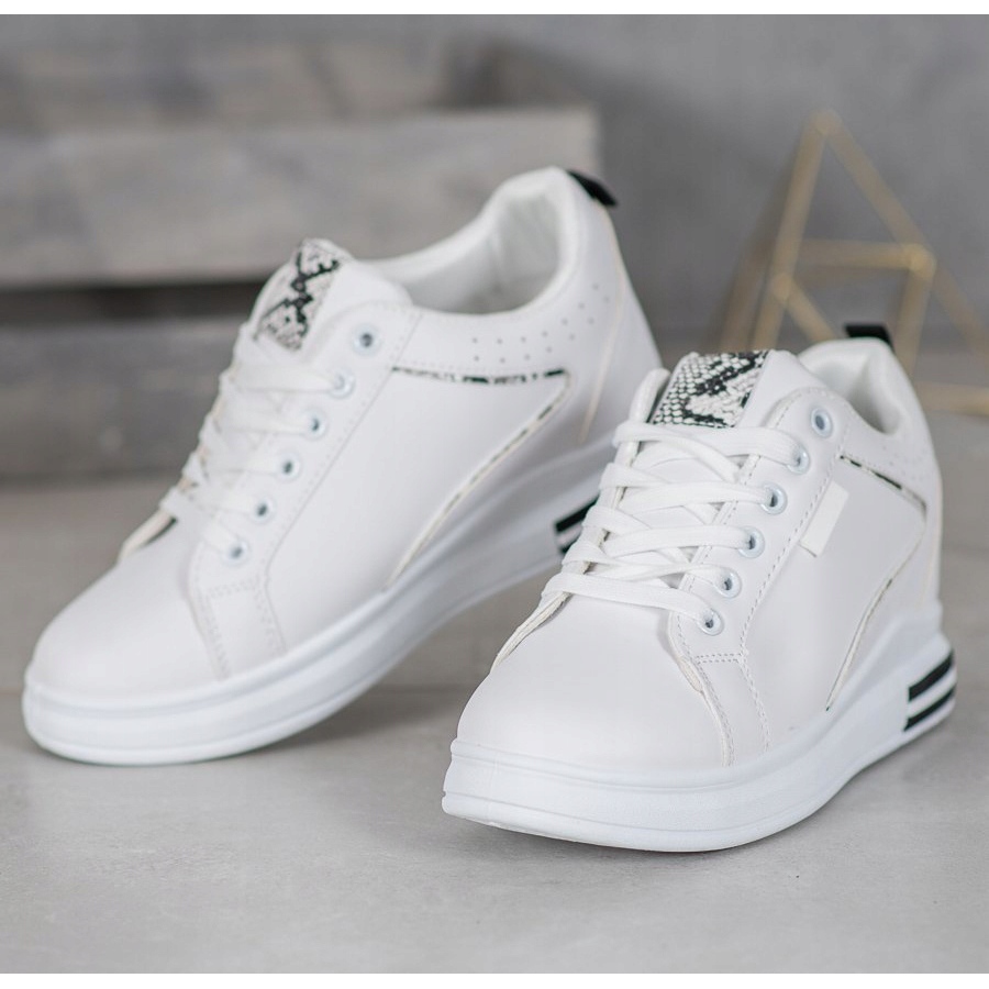 Încălțămintea albă SHELOVET cu pană ascunsă este o propunere ideală pentru femeile moderne care apreciază atât un aspect la modă, cât și confortul de zi cu zi. Acești pantofi sport eleganti, într-o culoare albă clasică, sunt o combinație perfectă de casualitate sportivă cu accente elegante.