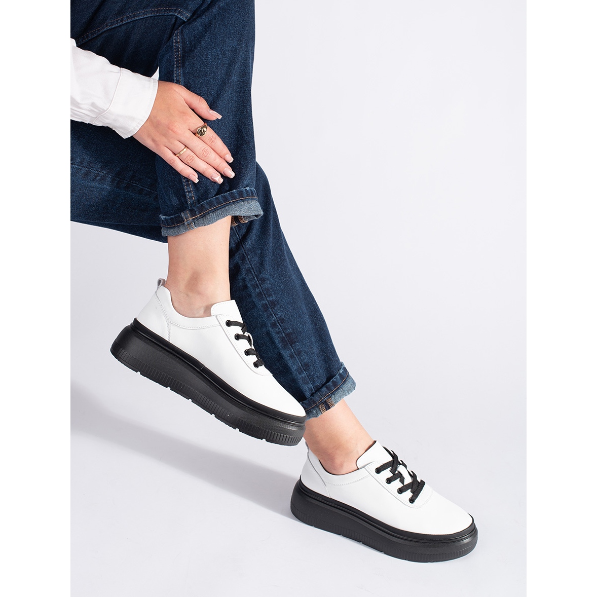 Detalii: Pantofi albi din piele pe o platformă neagră