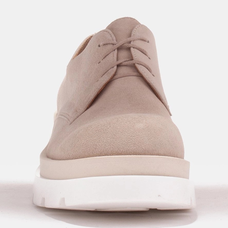 Pantofii Angelina se disting printr-o culoare bej discretă și o talpă albă și bej, ceea ce îi face o completare perfectă atât pentru stilurile de zi cu zi, cât și pentru cele mai elegante. Degetul rotund și închiderea cu șireturi asigură nu numai confort, ci și o potrivire adecvată la picior.