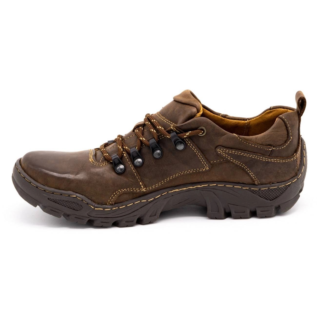 Cutters clasic de trekking, combinând comoditatea de a purta zilnic cu un aspect elegant. Partea superioară este confecționată din piele de cereale bazată pe cereale ușor de îngrijit, iar inserția din piele naturală asigură, de asemenea, o circulație corespunzătoare a aerului. O talpă flexibilă, de înaltă calitate, se adaptează la forma piciorului, care se traduce într -un confort ridicat în timpul unei uzuri lungi. Modelul este ideal pentru stilizări casual - se potrivește perfect cu blugi și ținute din oraș.
